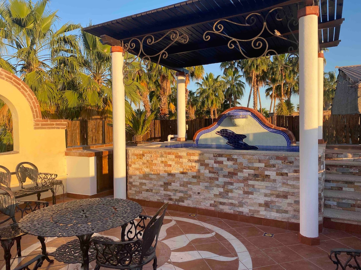 Visa grupė galės naudotis viskuo iš šio centre esančio būsto, esančio už 2 kvartalų nuo malekono ir už pusės kvartalo nuo miesto centro aikštės su restoranais Privatus 2 butų kompleksas su saugia automobilių stovėjimo aikštele Pirmasis butas yra 1/1 miegamojo Antras 2/2 butas su visa virtuve ir laužavietėmis Įrengtas šildomas/atšaldytas baseinas ir baras, plytų pirtis, vejos zona, vaismedžiai, lauke Horno, kepsninė, pilna vietinių meno kūrinių su rančos stiliaus baldais ir vietine istorine architektūra