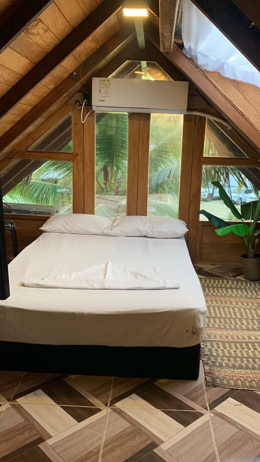Subirás por una escalera de madera maciza rodeada de flores tropicales hasta encontrar tu refugio privado: un acogedor mezzanine de estructura en madera con techo tipo cabaña a dos aguas, diseñado para que te sientas en armonía con la naturaleza de Moñitos.