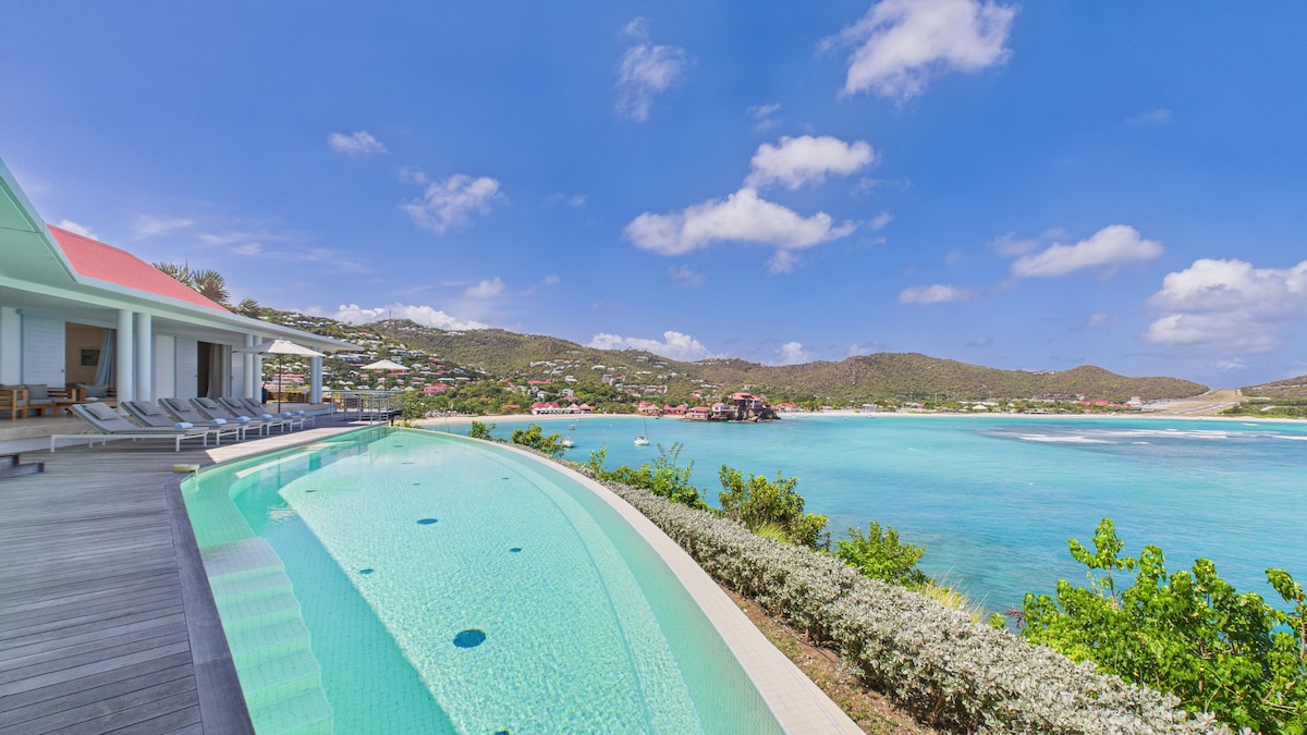 Blackstone provides modern, gilded comfort amongst the rugged beauty of the windward side of Saint Barthélemy. Take in the serenity of Marigot Bay, relax hard as frigate birds soar overhead, or splash into the blue waters of the Caribbean just seconds away. Enjoy cool, tropical drinks from the terrace as well as the landscape, as night-lights bathe the villa’s wooden alcoves in a warm glow. Copyright © Luxury Retreats. All rights reserved BEDROOM & BATHROOM • Bedroom 1 - Primary: King size bed, Ensuite bathroom with stand-alone rain shower, Alfresco shower, Dual vanity, Walk-in closet, Television, Apple TV, Desk, Safe, Air conditioning, Balcony with direct access to pool, Ocean view • Bedroom 2: King size bed, Ensuite bathroom with stand-alone rain shower, Dual vanity, Television, Apple TV, Safe, Air conditioning, Balcony, Ocean view • Bedroom 3: King size bed, Ensuite bathroom with stand-alone rain shower, Dual vanity, Television, Apple TV, Safe, Air conditioning, Balcony, Ocean view • Bedroom 4: King size bed, Ensuite bathroom with stand-alone rain shower, Dual vanity, Television, Apple TV, Safe, Air conditioning, Balcony, Ocean view • Bedroom 5: King size bed, Ensuite bathroom with stand-alone rain shower, Dual vanity, Television, Apple TV, Safe, Air conditioning, Balcony, Ocean view • Bedroom 6: King size bed (can be converted to 2 twins), Ensuite bathroom with stand-alone rain shower, Television, Apple TV, Safe, Air conditioning, Direct access to pool, Ocean view OUTDOOR FEATURES • Outdoor living area STAFF & SERVICES Included: • Meet and greet upon arrival • Escort to villa • Welcome gift and Hermes toiletries • Free luggage storage until your next stay • Assistance and farewell upon departure Extra cost (advance notice may be required): • Activities and excursions