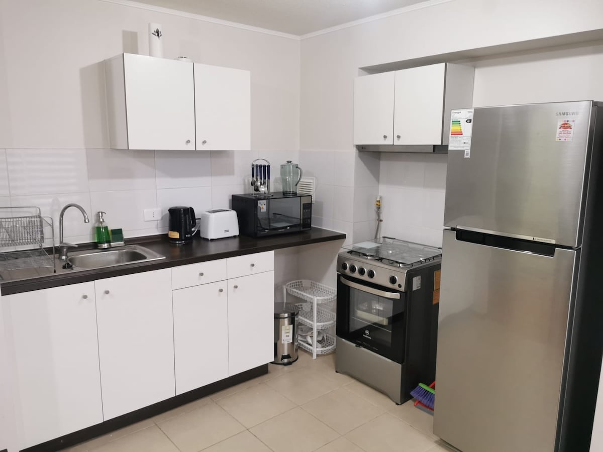 LANKYTOJAI!! Butas su visais reikiamais patogumais, esantis išskirtiniame gyvenamajame rajone su pavydėtinu, tyliu ir labai saugiu vaizdu, su puikiu išėjimu į pagrindinę prospektą, šiaurinio kelio įėjimą, 1 prekybos centro Lider kvartalą, netoli Sodimac ir verslo prie įėjimo į pastatą, yra privati automobilių stovėjimo aikštelė, liftas. Visiškai įrengtas, jame yra televizorius, Wi-Fi. Kai keleivis išeina į pensiją, atliekama dezinfekavimo paslauga.