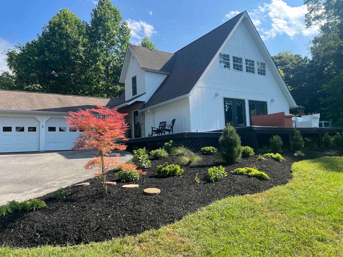 A quaint property on an idyllic, serene country farm with 41 acres of open land, walking paths, and lake that flows from the Tennessee river. Just 20 minutes from Knoxville, 2 hour to Smoky Mountains or Dollywood, and 2 hours to Chattanooga or Nashville. Enjoy a spacious and comfortable stay with farm amenities such as fishing on our various docks around the lake, watching the sunset with a fire pit, or grilling dinner outside.