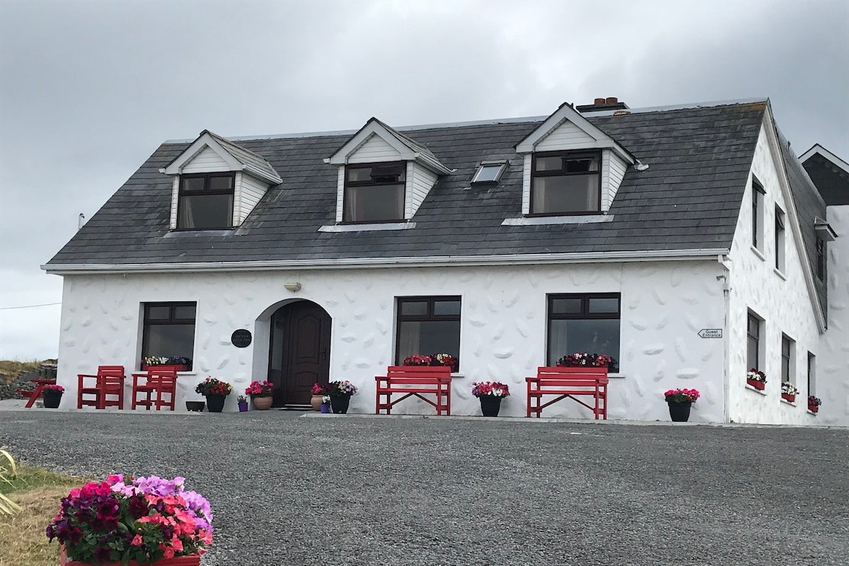Atsipalaiduokite mūsų jaukiame Airbnb kambaryje Renvyle mieste, įsikūrusiame nuostabiame laukiniame Atlanto vandenyne. Mėgaukitės kvapą gniaužiančiais vaizdais į jūrą iš savo patogaus būsto, vos už kelių minučių kelio pėsčiomis nuo paplūdimio. Šis ramus rojus puikiai tinka poroms, pavieniams keliautojams ar visiems, ieškantiems ramaus poilsio, sujungia šiuolaikinį komfortą su tvirtu Airijos vakarinės pakrantės grožiu. Atkreipkite dėmesį, kad tai tik kambarys. Nėra jokių kitų bendrų erdvių, išskyrus miegamąjį. Mūsų namuose taip pat nėra alkoholio. Ačiū.