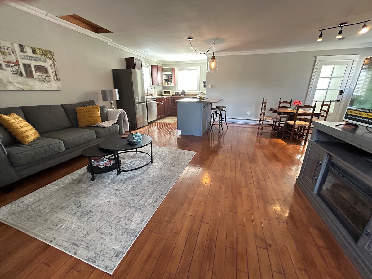Mūsų viršutiniame aukšte esantis butas yra atskirtas nuo namo ir turi atvirą gyvenamąją (600 kv. pėdų) koncepciją. Svetainė su televizoriumi ir židiniu, miegamasis, virtuvė su sala ir valgymo zona, rašomasis stalas arba šurmulys, skalbyklė ir džiovyklė, vonios kambarys su dideliu dušu. Ramus rajonas, daug takų, apsipirkimas ir nuotykiai netoliese. Magiškasis kalnas, Parlee paplūdimys, 5-8 min. iki Monktono centro - Avenir centro. 15 min. iki oro uosto. 30 min. iki Shediac arba Hopewell kyšulio uolų, 1,5 val. iki Fundy nacionalinio parko. Prieiga prie rakto kodo