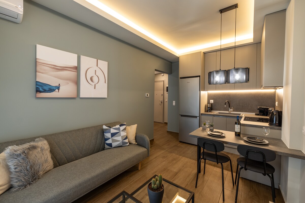 Stilinga, ką tik renovuota studija tik už 10 min. kelio nuo Salonikų miesto centro Protingas, profesionalus dizainas su salos atmosfera, tikra oazė miesto centre. Pilnai įrengta virtuvė, Nespresso aparatas, dujinis šildymas, didelės spartos šviesolaidinis internetas. Puikiai tinka verslo keliautojams ir lankytojams. Pasitikite ir mėgaukitės viešnage!