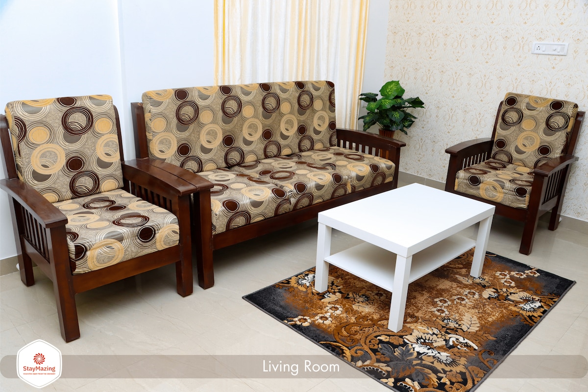 Welcome to our brand new, spacious 2-BHK apartment, ideal for families and couples seeking comfort and convenience. The bedrooms have king / queen size beds with soft orthopedic mattresses for a restful night's sleep. Relax in the large living room with a 43-inch Smart TV, lightning-fast WiFi and a dedicated dining area. Comes with two super clean bathrooms stocked with bath essentials. The fully equipped kitchen includes high-quality appliances and crockery for your culinary adventures.