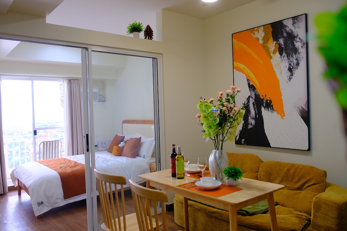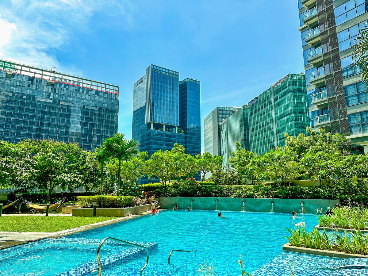 Šis naujas 28 kv. m 1-BR butas sujungia prabangų, šiuolaikišką dekorą su šilumos prisilietimu ir elegantišku potyriu. Įsikūręs vos už kelių žingsnių nuo parduotuvių, kavinių, restoranų ir dar daugiau! Jis yra Ortigas ir BGC viduryje. Šiame unikaliame potyryje jūsų laukia ramūs rytai ir smagios popietės! Prabangi dvigulė lova, atpalaiduojanti sofa, gerai įrengta virtuvė, elegantiškas vonios kambarys, 55 colių rėmo televizorius, privatus balkonas ir patrauklus apšvietimas, kad jaustumėtės kaip namuose!