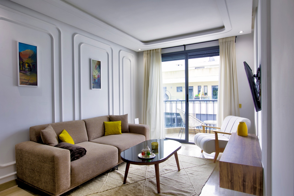 Experience modern luxury in the heart of Casablanca. This brand-new 1-bedroom apartment combines sophisticated design, elegant décor, and top-quality finishes for an unforgettable stay. Enjoy a bright living room with Smart TV, a stylish bedroom, a marble bar counter, and a private balcony. Perfectly located near the city’s best restaurants and shops — ideal for both business and leisure A place designed by kari_immo