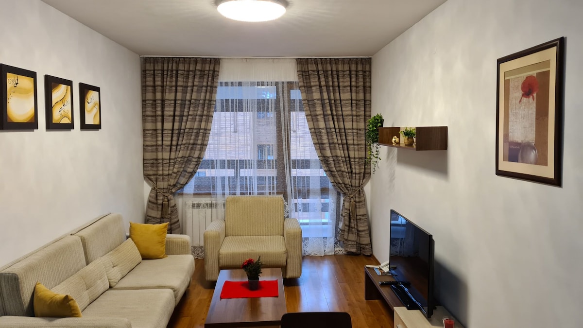 Mėgaukitės viešnage aukščiausiame Skopjės bokšte visiškai naujame bute, esančiame 19 aukšte, iš kurio atsiveria žavingas vaizdas iš trijų miesto pusių. Pastatas yra vos už 4 km nuo miesto centro. Kaip mūsų svečiai galėsite atsipalaiduoti nemokamame SPA ir kūno rengyboje. - Nemokama automobilio stovėjimo aikštelė. - Nespresso aparatas - Prancūziška terasa - TV 55" ir TV 40'' Smart - Turgus, bankomatas, vaistinė - Registratūra ir apsauga visą parą - 22 km iki Skopjės tarptautinio oro uosto