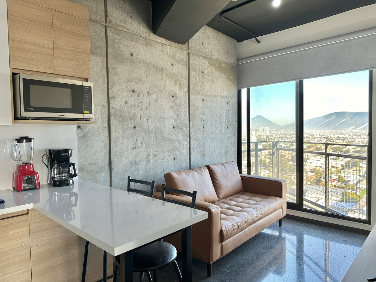 Sveiki atvykę į Barrio W Puiki vieta Monterėjaus širdyje, už kelių kvartalų nuo Macroplaza, Paseo Santa Lucia, muziejų, Barrio Antiguo, kur rasite restoranų, barų ir dar daugiau, esančių 22 aukšte, todėl atsiveria įspūdingas vaizdas į Cerro de la Silla. Suteikiame jums prabangų loftą su viskuo, ko reikia, kad viešnagė būtų puiki. Įtraukta 1 automobilio stovėjimo vieta. 5 min. iki CAS automobiliu, 10 min. iki San Pedro savivaldybės, 10 min. iki Fundidoros, 20 min. iki BBVA