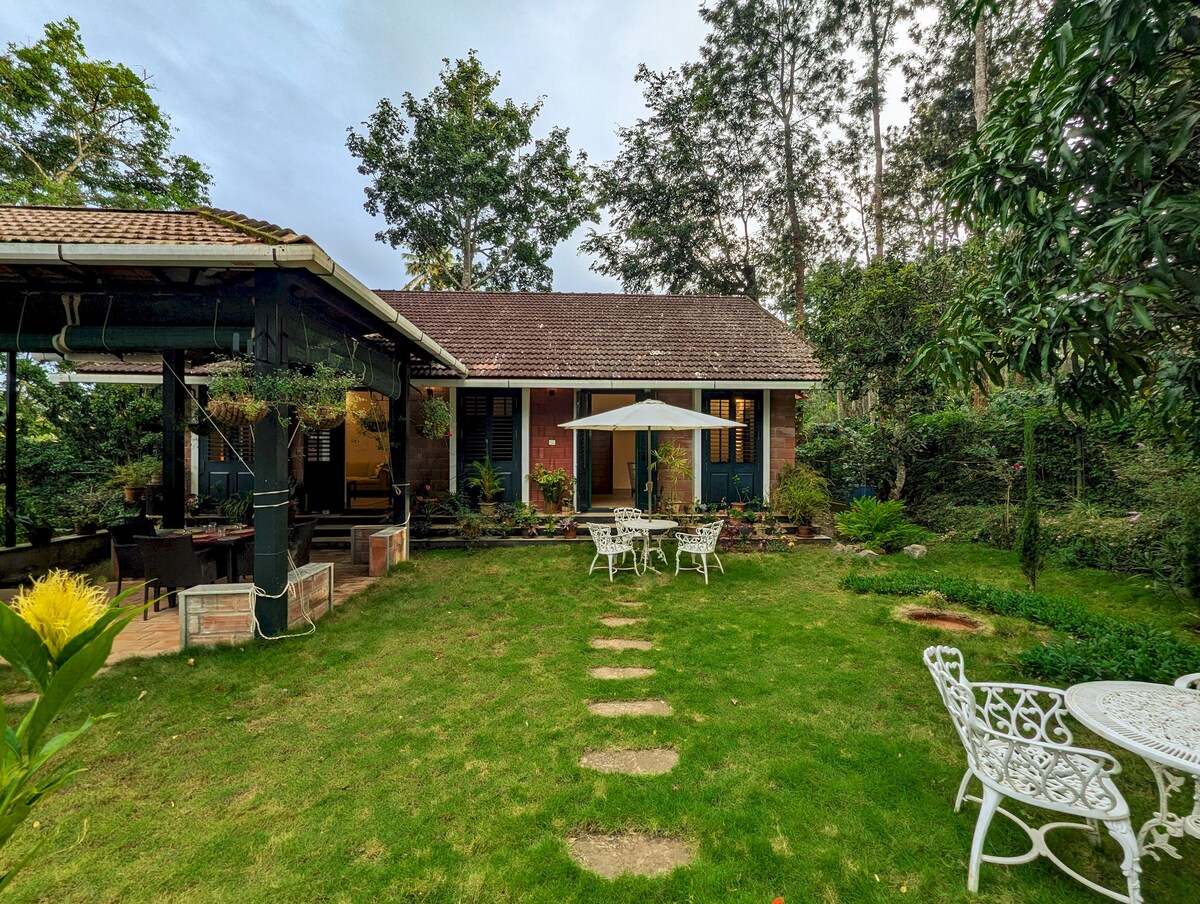 Escape to Pine Tree Place, a breathtaking two-bedroom cottagecore homestay offering postcard perfect views. Your arrival begins on a secluded, winding road, embraced by the region's lush greenery of coffee plantations. This two-bedroom cottage is a classic Coorg escape, where the mornings offer a tranquil spectacle: sunlight filters through the canopy, and the only sounds are the gentle hum of the estate and the distant calls of native birds.