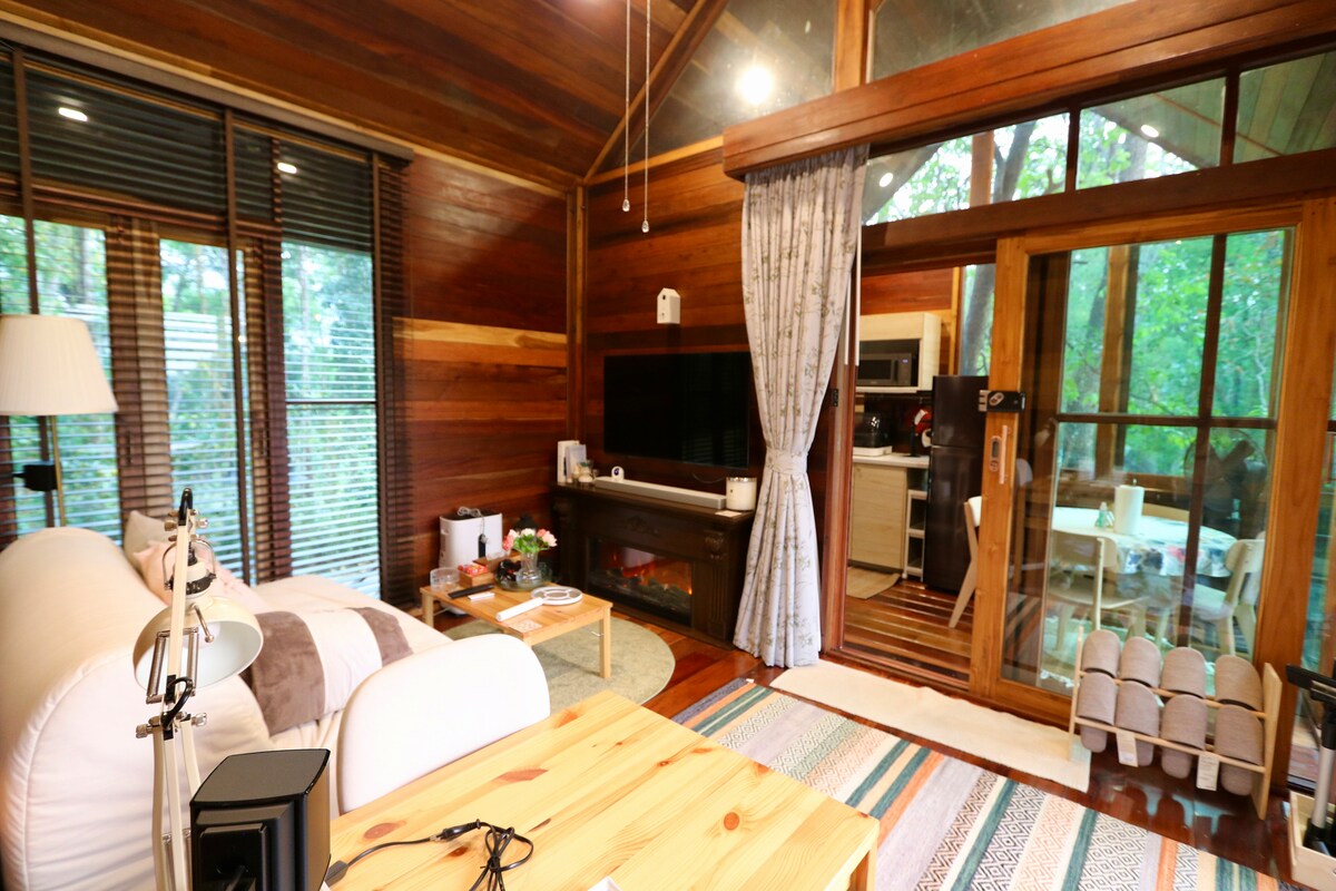 ถ้าคุณได้มีโอกาสมาสัมผัสที่พักแห่งนี้ คุณจะไม่อยากจากไปไหนเลย เพราะที่นี่ไม่เหมือนใคร คุณจะพบกับความสงบ ราวกับอยู่บนสรวงสวรรค์ ใกล้ชิดกับธรรมชาติ ต้นไม้และสายธารที่เย็นฉ่ำและใสสะอาดจากแหล่งต้นน้ำบนยอดเขา พักผ่อนอยากสบายในห้องพัก 3 แบบ 3 สไตล์ที่ไม่มีใครเหมือน และให้ความเป็นส่วนตัวสูงสุด ไม่ปะปนกับใคร คุณจะได้สัมผัสกับอากาศที่หนาวเย็นและสะอาดที่สุดตลอดทั้งปี พร้อมสิ่งอำนวยความสะดวกครบครันรวมถึงเตาผิงให้คุณได้มีช่วงเวลาพิเศษกับคนสำคัญของคุณ และยังมีอ่างน้ำร้อนให้นอนแช่น้ำเพื่อความผ่อนคลายและอบอุ่น