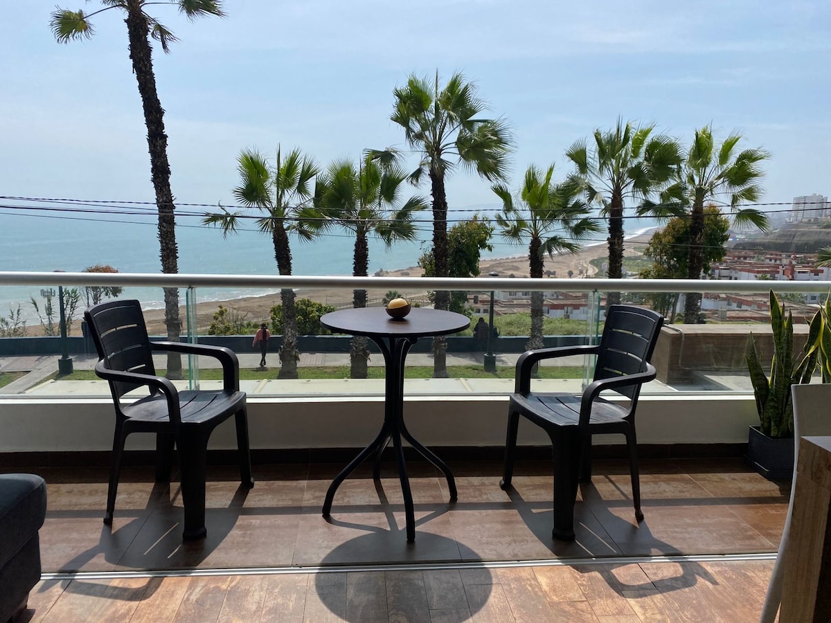 Atardeceres inolvidables, linda vista al mar, Zona tranquila, segura, áreas verdes que dan un toque de calma, podrás dar largas caminatas, hacer deportes al Aire libre o de aventura en el Malecón muy cerca al COSTA 21 Un día de mar cambia tu energía y optimiza tu mente. Dpto. amoblado para tu confort, 2 Smart TV 60", Internet directo Wifi de 100 Mbps, amplia terraza para disfrutar de la imperdible vista o cenas románticas CULMINO LA CONSTRUCCIÓN DEL EDIFICIO de la esquina, disfruta la calma
