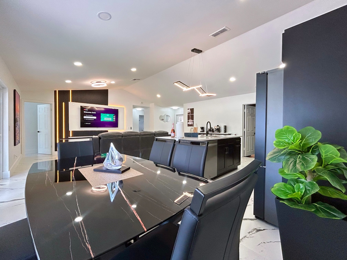 Prabangi vila uždaroje bendruomenėje Kissimmee (keturi kampai). Modernu. Įsikūręs už 10 min. kelio nuo Disney teminių parkų. Puikiai dekoruotas ir pristatytas. Žaidimų kambarys, mini sporto salė, graži, didelė baseino terasa, kuri yra visiškai uždara ir nuošali. Yra privatus baseinas ir SPA zona. Trys miegamieji ir vienas miegamasis yra atskirti nuo pagrindinio namo, bet vis dar uždaryti pastate. Tai puikiai tiktų jaunai porai grupėje, nes joje yra atskiras vonios kambarys, maža virtuvė ir visiškas privatumas.