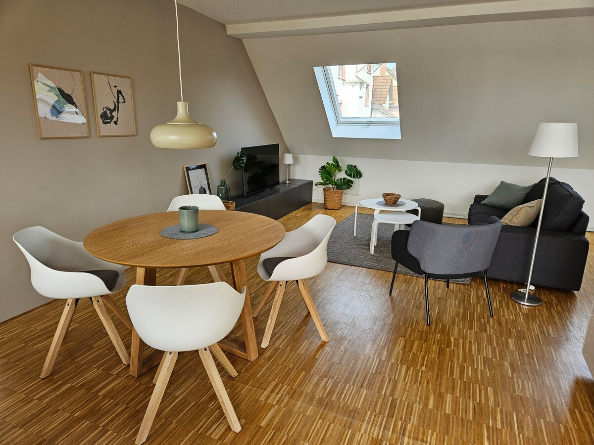 Butas yra antrame aukšte – į jį galima patekti laiptais!! Šioje ypatingoje apgyvendinimo vietoje visi svarbūs kontaktiniai punktai yra labai arti, todėl planuoti viešnagę labai lengva. Bute yra moderniausios technologijos. Jame, be kita ko, įrengtas grindinis šildymas. Be to, miegamajame yra lova (140x200) ir krėslas. Svetainės-valgomojo zonoje yra sofa (Ewald Schilling), kavos staliukas (Joop), televizoriaus spintelė su tamsaus stiklo priekine dalimi (Ikea), virtuvė (juoda matinė priekio dalis)