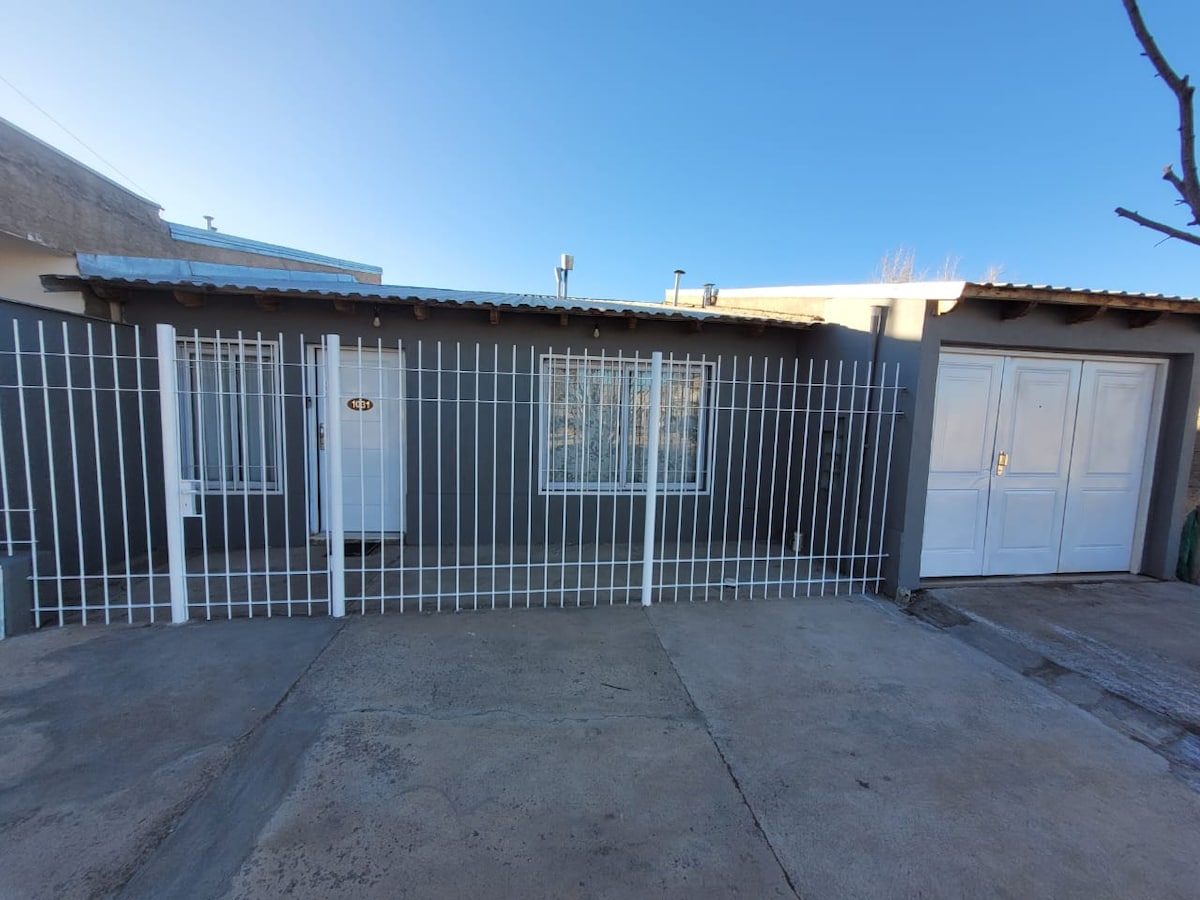 Disfruta de tus días de descanso en este espacio privado, amplio , sereno y seguro. Siéntete como en tu casa. Situada en pleno corazón de Malargüe, la casa cuenta con 2 habitaciones, una con cama matrimonial y otra con camas individuales. Un living con un futón, Smart tv y Wifi. Un comedor con ventilador de techo. Cocina completamente equipada, termotanque y lavarropas. 2 calefactores de tiro balanceado Garage techado y un hermoso jardín con parrilla para disfrutar al aire libre
