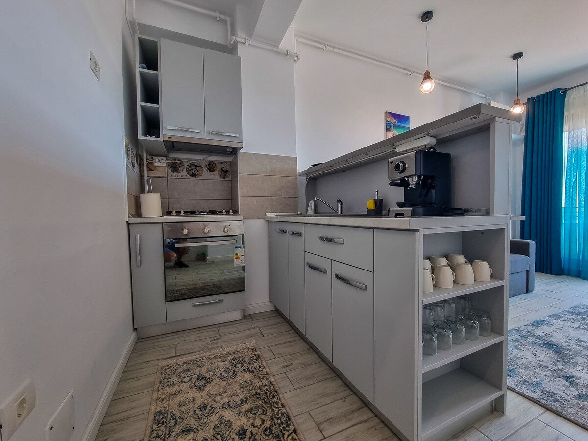 3 miegamųjų butas, Konstancoje, ką tik renovuotas, labai švarus ir tylus, šalia naujo Konstancos paplūdimio. (1 minutės pėsčiomis) Kiekviename miegamajame yra dvigulė lova. Vienas yra 140/200 cm, o du iš jų - 180/200 cm (karališko dydžio) Patalynė ir rankšluosčiai yra nemokami Visas hd televizorius su dideliu ekranu ir oro kondicionieriumi kiekviename kambaryje Nemokamas belaidis internetas ir kabelinė televizija Šalia pastato yra nemokama automobilių stovėjimo aikštelė Virtuvėje yra viskas, ko jums reikia. Du vonios kambariai, vienas su sūkurine vonia, o kitas su dušu