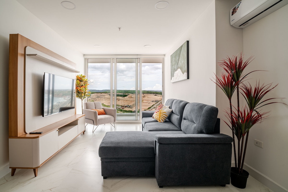 Ši puiki erdvė su vaizdu į vandenyną atveria duris jums mėgautis su šeima, draugais ar verslo kelionėje, kur rasite keletą patogumų, kuriuos siūlo Grand Bay pastatas, su nemokama prieiga prie baseino, baro, sporto salės, saunos, turkiškos pirtis, žaliosios zonos, stogas su kepsnių zona, su puikiu panoraminiu vaizdu į vandenyną ir miestą ir labai greitai su prieiga prie paplūdimio. Netoli prekybos centrų, restoranų, kavinių, degalinių ir kitų pramogų vietų!
