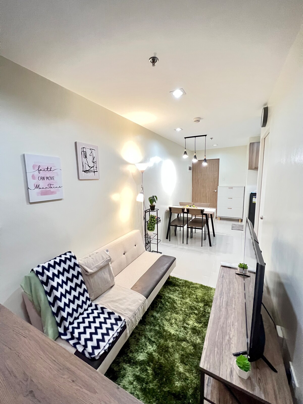 - Spacious 1 BR unit can comfortably accommodate up to 7 Guests - Double size bed and single size mattress in the Bedroom and 2 Double size Sofabed in the living room - 42” Smart TV with Disney+, Amazon Prime, Max, YouTube and more - Super-fast Fiber Optic Internet Connection up to 350++Mbps Speed - Dedicated Work Station - 3 Swimming Pools - Full kitchen with cooking wares - Dining Table - Walking distance to Ayala Mall Central Bloc, Restaurants, Convenient stores, Coffee Shops, Bars and more