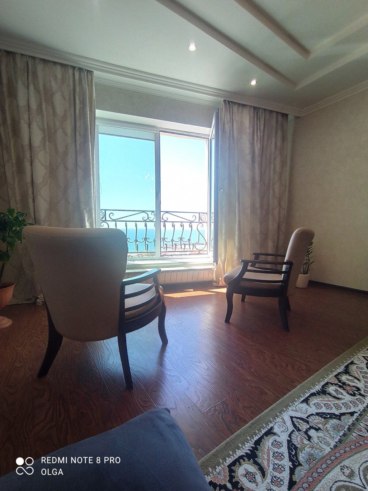 Mėgaukitės stilingu potyriu pačioje miesto širdyje su panoraminiu vaizdu į jūrą. Prabangūs modernaus minimalizmo stiliaus butai (juodi butai) pirmoje eilėje miesto centre, centrinėje krantinėje ,klasikiniame Aktau galerijos name, pastatytame 90-ajame dešimtmetyje, yra liftas. Netoliese yra parduotuvės, restoranai, kavinės, prekybos centrai,krantinė ir kt. Bute yra viskas, ko reikia patogiai viešnagei. Išskirtinis valgomasis ir miegamasis su vaizdu į jūrą, karališko dydžio lova 10 000 tengių užstatas