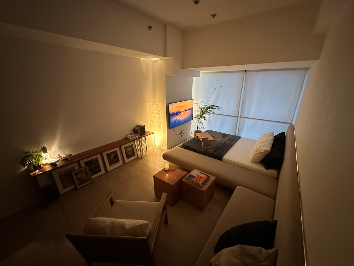 Sveiki atvykę į mūsų erdvų šiuolaikišką ir Viduržemio jūros regiono įkvėptą Tahanan - 25 kv. m studiją Mandalujonge, vos už kelių minučių pėsčiomis nuo Rokvelio ir prekybos centro „Powerplant“! Sukūrėme savo erdvę, kad suteiktume patogią viešnagę ir užfiksuotume nuostabius saulėlydžio vaizdus, taip pat Mandalujongą ir Makati iš mūsų balkono. Nesvarbu, ar lankotės darbo, laisvalaikio ar jų derinio tikslais, mūsų gerai įrengta Airbnb yra puiki vieta tyrinėti gyvybingus Mandalujongo ir Makati miestus.