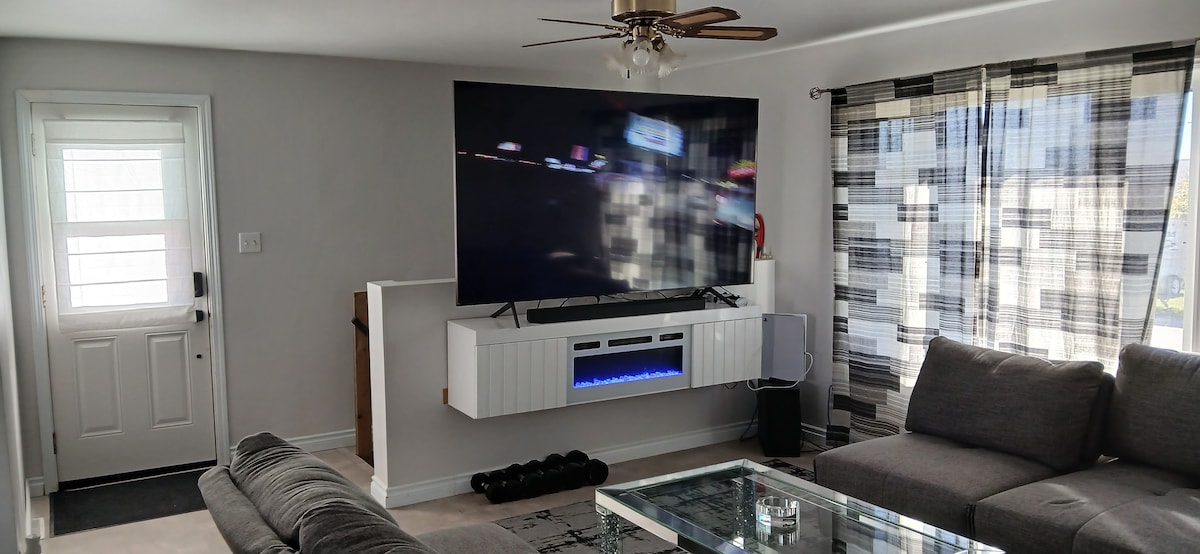 Stay in a comfortable four-bedroom, three bathroom bungalow in a quiet, safe Thompson neighborhood. Enjoy a full gym with surround sound, a cozy entertainment room with a wet bar, and three big screen TV's. Relax on the deck with a Broil King Barbeque or unwind by the back yard fire pit. WIth tons of parking and easy access to loacl amenities, this home is ideal for families, work crews, or anyone looking for a clean, convenient stay in northern Manitoba.