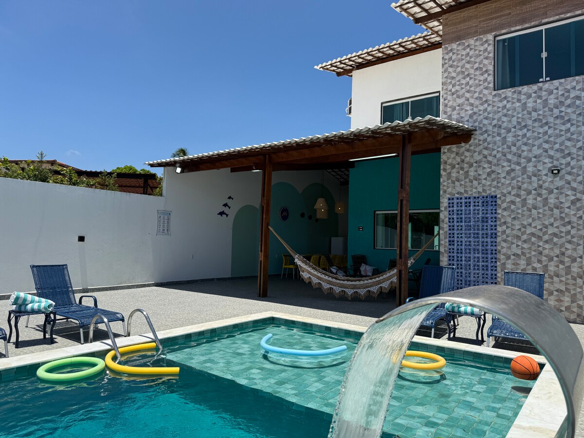 Šis namas, 🏖️ esantis netoli kranto, yra vos už 3 minučių kelio pėsčiomis nuo paplūdimio ir vos už 15 minučių kelio automobiliu nuo žymiausių Maragogio paplūdimių: Antunes ir Mozės kelio. 📍 Jis yra netoli puikių restoranų ir prekybos centrų, o strateginė vieta leidžia susipažinti su visa Alagoas ir Pernambuco pakrante. ✨ Šis namas, kuriame yra 5 miegamieji su oro kondicionieriumi ir pakankamai lovų 21 žmogui, idealiai tinka tiems, kurie ieško erdvaus, gerai įrengto ir gerai įrengto namo su BASEINU!
