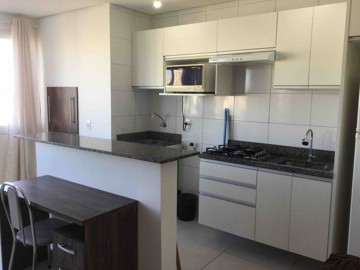 Naujas apto. pačioje Passo Fundo širdyje, su bendrabučiu, svetaine, virtuve (su visu rinkiniu), vonios kambariu ir privačiu bei dengtu garažu. Apto yra padalytas oro kondicionierius, Wi-Fi ir išmanusis televizorius, baldai yra specialiai pritaikyti, suprojektuoti su didele meile! Apto yra geroje vietoje, netoli visko: IOA (500 m), HD (850 m), MBA-FGV (450 m), Atitus (750 m), pagrindinės miesto ligoninės (HSVP-1500 m, H. Clínicas-1000m), restoranai (100 m), parduotuvės, prekybos centrai (100 m), Bella Citta prekybos centras (850 m) ir kt.