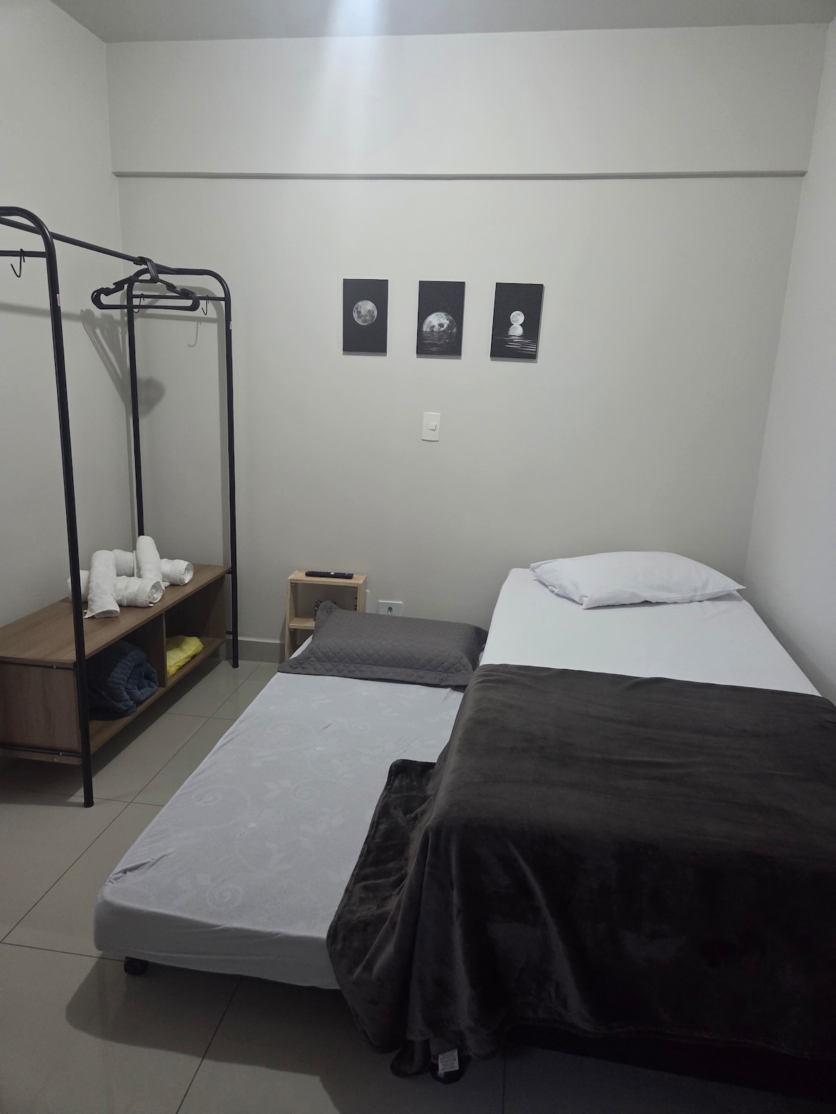 Apartamento sobreloja com 2 quartos, sendo 1 suite com ar condicionado, 1 quarto com ventilador, sala de estar e jantar com ar condicionado, cozinha e lavanderia integradas. Ideal para sua estadia a trabalho ou lazer, com conforto e espaço, próximo de comércios, padaria na mesma localização, ponto de ônibus em frente, próximo de hipermercado, centro de eventos, e o melhor shopping da região.