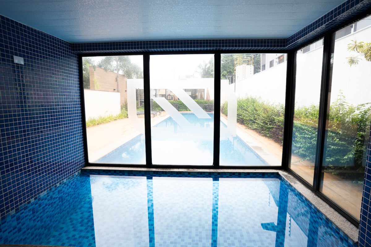 Mėgaukitės nuostabia viešnage Maringoje, apsistodami pačioje miesto širdyje! Čia būsite netoli Katedros, viešojo transporto terminalo, pagrindinių prospektų ir lengvos prieigos prie turgaviečių ir restoranų. Kondominiume yra šildomas baseinas, sauna, sporto salė ir vakarėlių kambarys (pagal pageidavimą). Be to, bute yra visa virtuvė, oro kondicionierius ir didelės spartos belaidis internetas, išmanusis televizorius, balkonas su vaizdu. Puikiai tinka laisvalaikiui ar darbui. Jums patiks! ✨