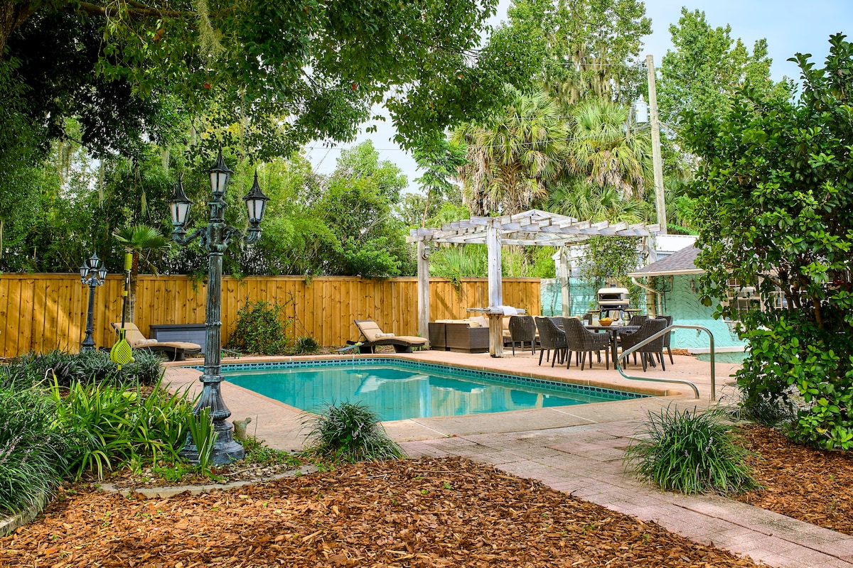 Relax in a safe neighborhood with a pool home that boasts 3 bedrooms and a game room with air hockey/pool/Foosball table. There is a outdoor Basketball hoop, ample pool side seating, fire pit, and kayaks for exploring The Silver Springs, which are 6 miles away. This home is spacious, quiet, and clean. Just minutes from downtown and 12 miles from World Equestrian Center. Have fun grilling by the pool or venturing out on the town. This home is central to everything Ocala has to offer.