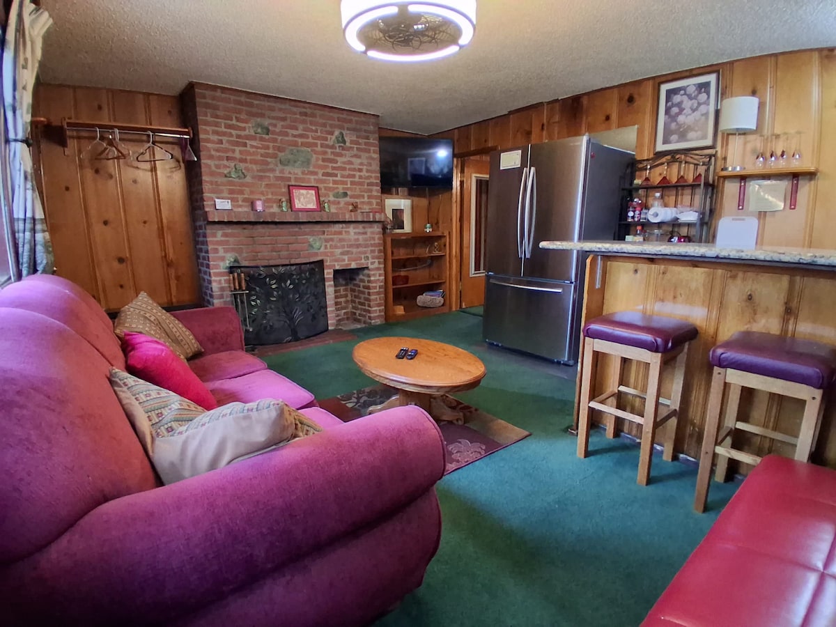 This is an ideal romantic vacation spot for couples. It is located in a quiet, serene neighborhood and has a large deck to enjoy. There is usually snow in winter. This is a kid friendly property with a pack-n-play, booster seat, and a play kitchen area in the downstairs. There is a king bed located upstairs in the loft (winding staircase is steep) and a double bed located downstairs in a bedroom. Permit 073480 TOT T62919 Max occupancy 4 Quiet hours 10pm-8am No visitors during these times