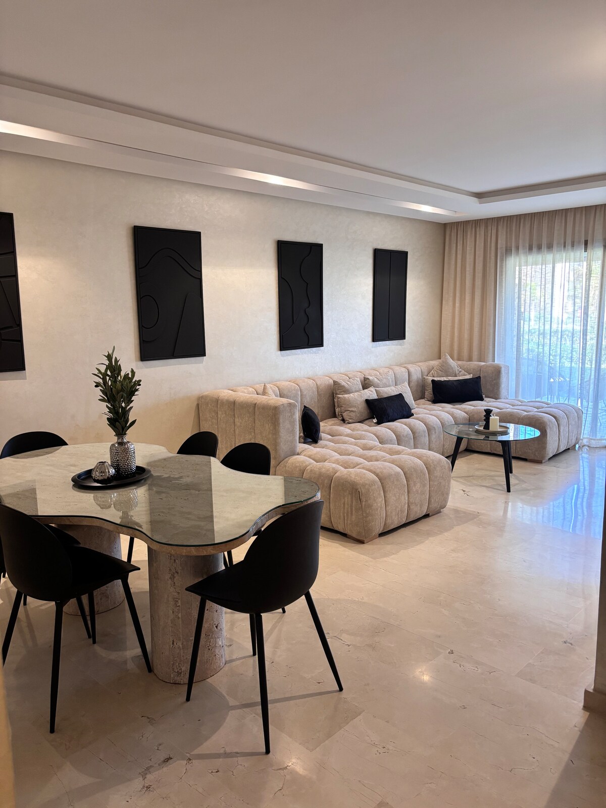 Marakešo širdyje atvykite ir mėgaukitės šiuo gražiu butu, visiškai renovuotu ir skoningai dekoruotu. Pilnai įrengtame, naujoje ir kokybiškoje patalynėje yra visi patogumai ir prabanga, reikalinga atsipalaidavimui su šeima ar draugais. Gyvenamojoje vietoje yra daug baseinų, restoranų ir žaliųjų erdvių. Butas yra Prestigia golfe Marakeše, kuris yra mažiau nei už 10 minučių kelio nuo oro uosto, už 5 minučių kelio nuo medinos.