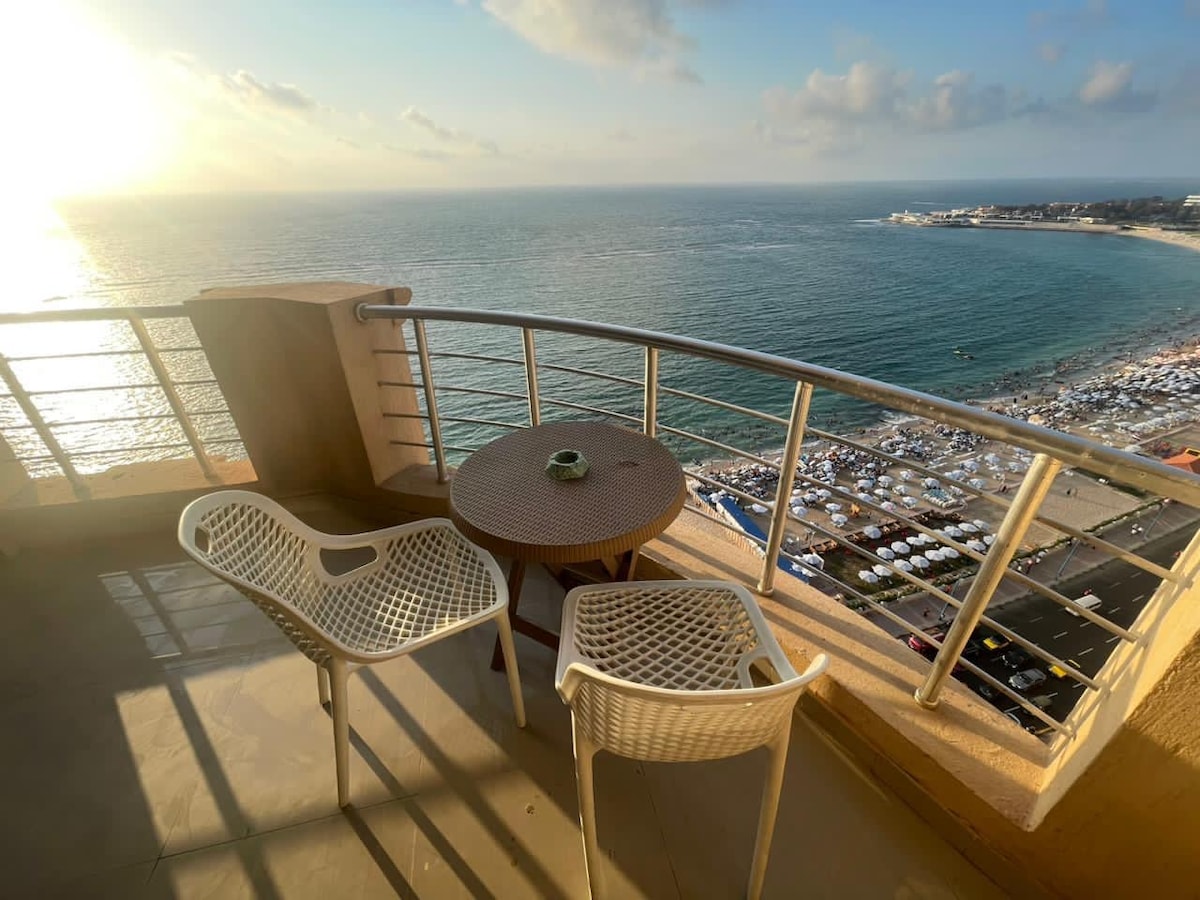 🏖️ Prabangūs paplūdimio apartamentai Sportinge, Aleksandrijoje | Nepamirštamas pabėgimas! ✔️ Panoraminiai vaizdai į jūrą: pabuskite prie bangų ir kvapą gniaužiančių vaizdų ! ✔️ Elegantiškas dizainas: jaukūs miegamieji, stilinga svetainė, moderni virtuvė. ✔️ Nesibaigiančios pramogos: 55colių išmanioji televizija su „Netflix“ ir „Shahid VIP“ + didelės spartos Wi-Fi. ✔️ Saugumas: visą parą be poilsio dienų , liftai. 📍 Pagrindinė vieta: Žingsniai nuo paplūdimio 🌊 – plaukite arba pasivaikščiokite saulėlydžio metu! Populiariausi restoranai ir kavinės Aleksandrijoje ☕ Netoli Aleksandrijos lankytinų vietų ir apsipirkimo vietų.