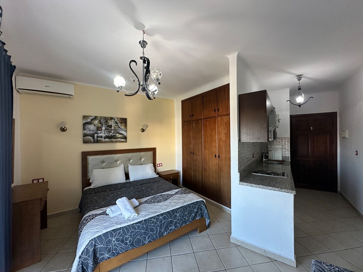 prabangūs apartamentai netoli paplūdimio su oro kondicionieriumi