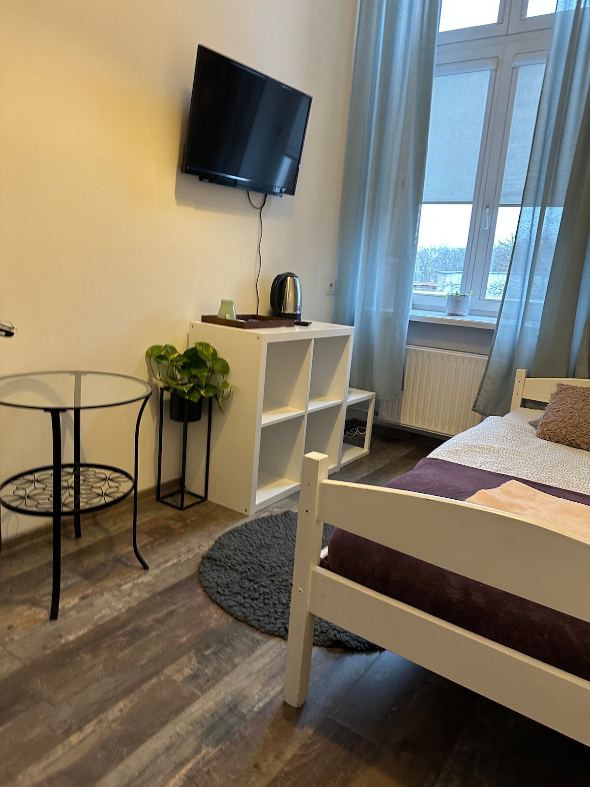 Neįtikėtinai funkcionalus dvivietis kambarys su bendru vonios kambariu koridoriuje ir prieiga prie balkono. Būstas yra pačioje Varšuvos širdyje, už 200 metrų nuo Krokuvos Przedmieście. Kambaryje yra šildymas, 2 patogios lovos ir plokščiaekranis televizorius. Turime belaidį, didelės spartos internetą, viešąjį: virtuvę, svetainę ir ypač gražų personalą :) Kambarys priklauso Mėnulio nakvynės namams, kur registratūra dirba nuo 10 iki 18 val. Po 18 metų galimas savarankiškas atvykimas.