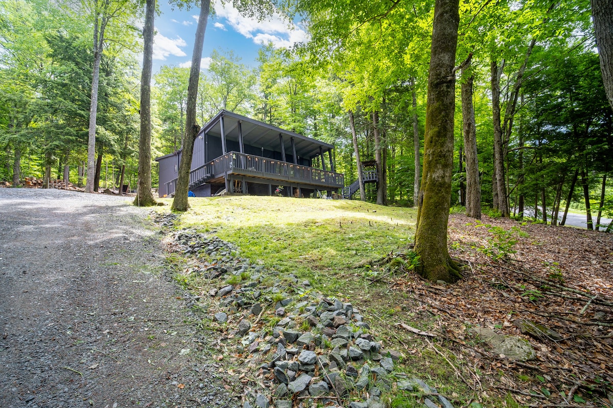 Pabėkite į šį modernų, jaukų poilsį, kuriame jus supa gamta. Užmigti pelėdų, kriketo ir varlių. Vos už 2 min. kelio nuo Rosendale ir už kelių minučių kelio automobiliu iki Kingstono, Naujojo Palco ir Stone Ridge su netoliese esančiais restoranais ir takais. Mėgaukitės dujiniu židiniu, skaitymo kampeliu su vaizdu į medžius ir didele terasa, kurioje jaučiatės lyg būtumėte medžiuose. Privačioje lauko erdvėje yra laužavietė, esanti ramioje 3 akrų sklype, siūlanti visišką ramybę ir tylą. Jūsų laukia tobulas pabėgimas iš Hadsono slėnio!