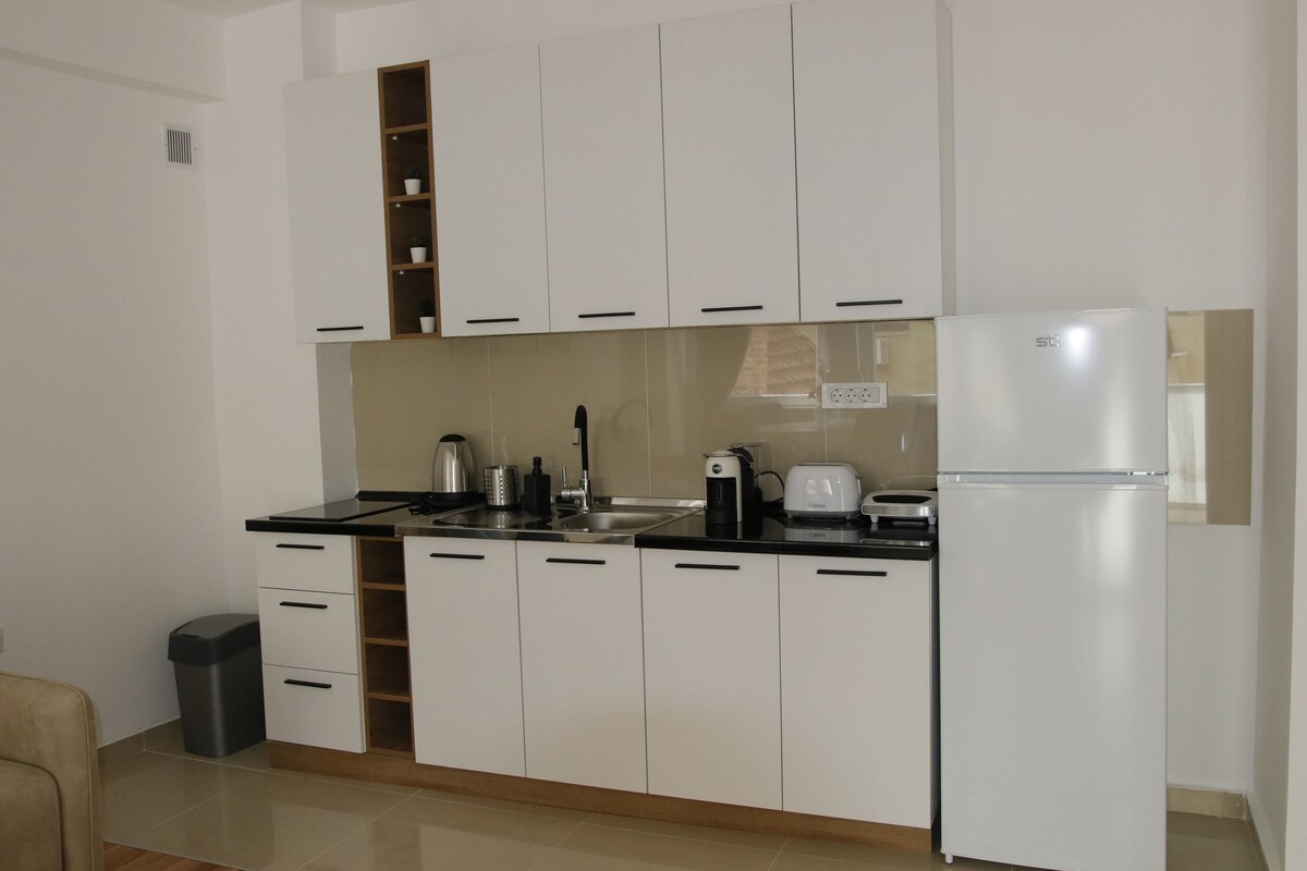 Mėgaukitės stilingu potyriu šioje centre esančioje vietoje Tai VISIŠKAI NAUJAS 60 kv. m butas už 5 minučių kelio pėsčiomis nuo miesto parko (stadiono) ir pagrindinės aikštės. Geriausia vieta, labai arti gražių Debar Maalo gatvių su daugybe barų ir restoranų. Bute yra 1 miegamasis su dvigule lova ir svetainė su patogia sofa-lova ir ištraukiama lova Taip pat 2 balkonai iš abiejų kambarių, vienas su vaizdu į Vodno kalną. Galite juo išgerti kavos arba papietauti