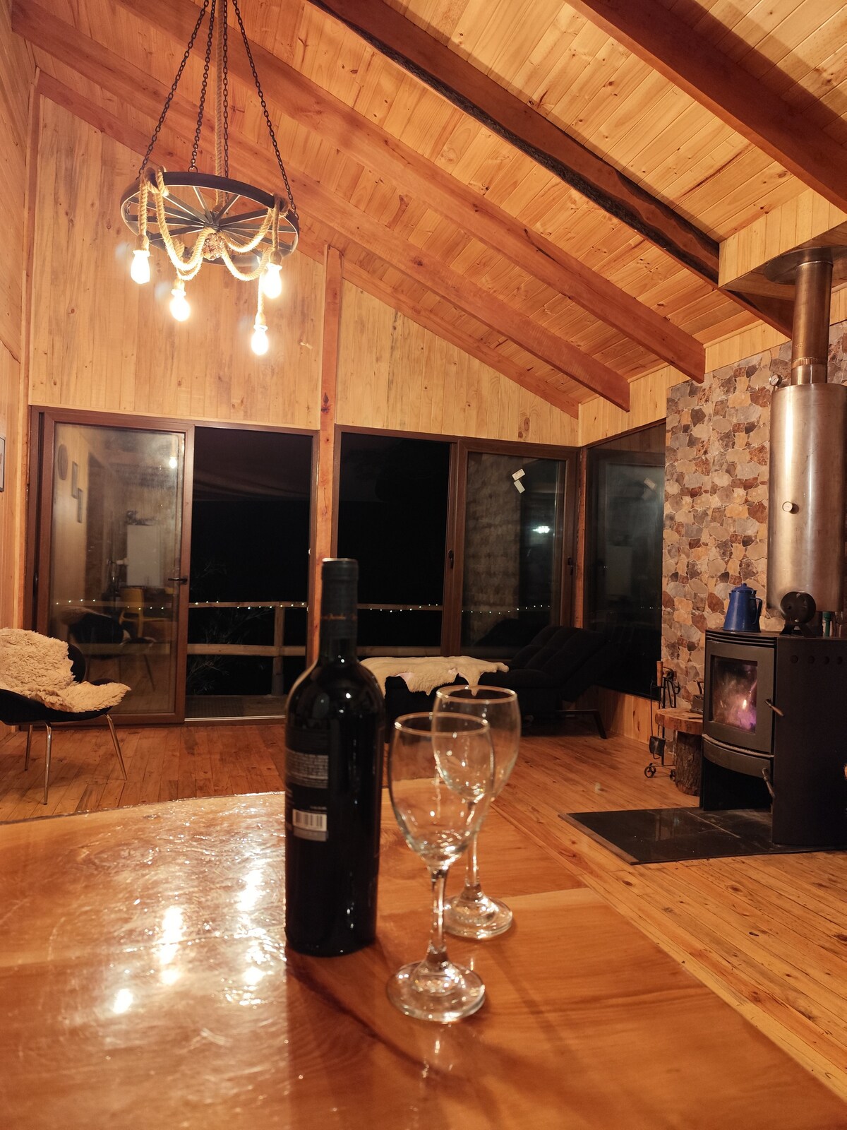 Pabėkite į jaukią poilsio vietą gamtoje Los Queñes vietovėje, apsuptoje vietinio miško ir su gražiais vaizdais į Claro upę. Mėgaukitės erdvaus privataus būsto, puikiai tinkančio šeimoms ar draugams, ramybe. Netoliese galite patirti nuotykių lauke, pavyzdžiui, plaukioti baidarėmis, leistis plaustais ir žygiuoti pėsčiomis. Po dienos lauke atsipalaiduokite prie židinio, grožėkitės kraštovaizdžiu pro didelius langus arba mėgaukitės kepsniais saulėlydžio metu.