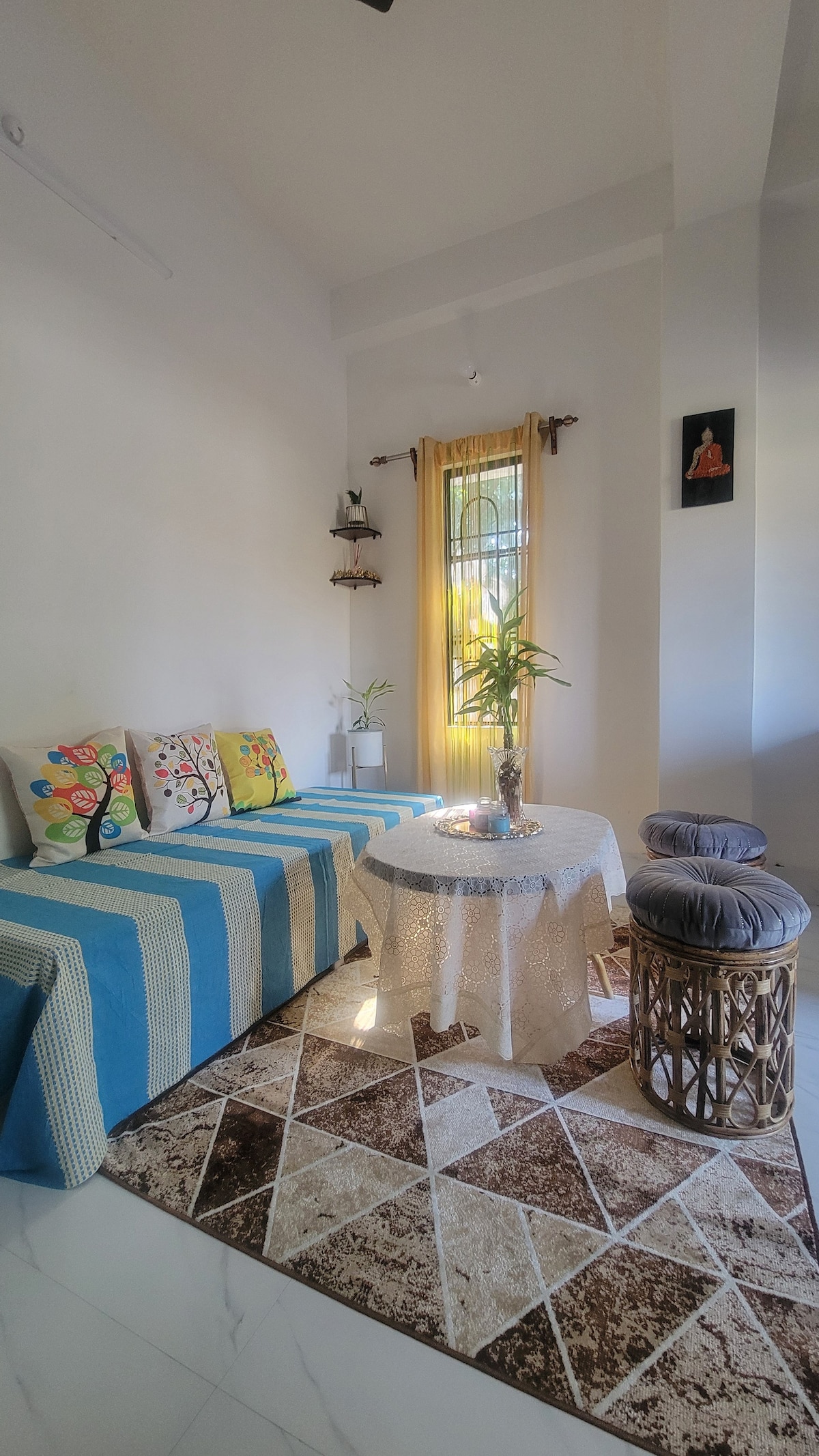 We welcome Long Term Stays and currently offering heavy discounts. Welcome to Your Cozy Jungle Retreat! Here you can enjoy your time in the lap of nature. Relax with the whole family or solo at this peaceful place to stay. Perfect for remote working. A pollution-free second home, give yourself a break. Experience luxury in our elegant flat with one bedroom, one bathroom and a stunning open verandah. Located in the heart of nature, you're a walk away to the jungle & village.