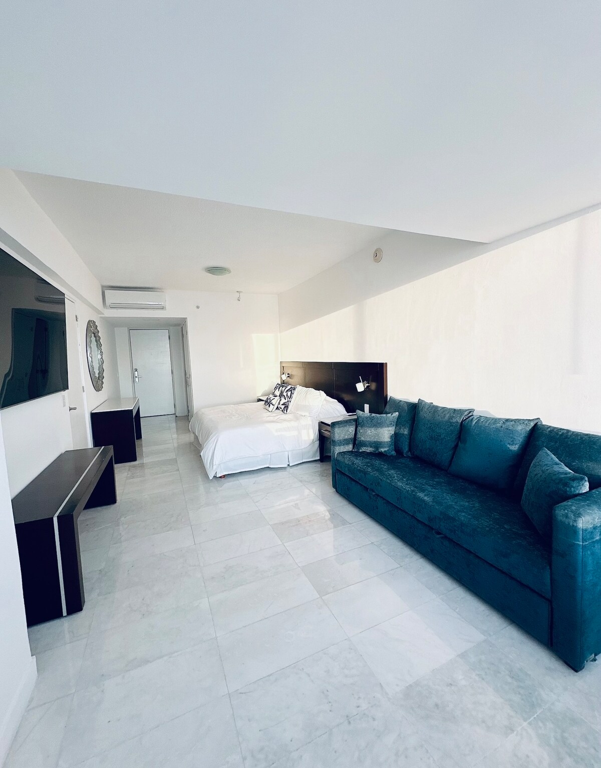 Simple and functional loft apartment in a great location to explore Mazatlán on foot. Located across from Parque Ciudades Hermanas, less than two blocks from the beach and close to the Malecón, Olas Altas and the Historic Center. A practical space with great natural light, a fully equipped kitchen, a king-size bed and a dedicated work area. Ideal for medium and long-term stays.