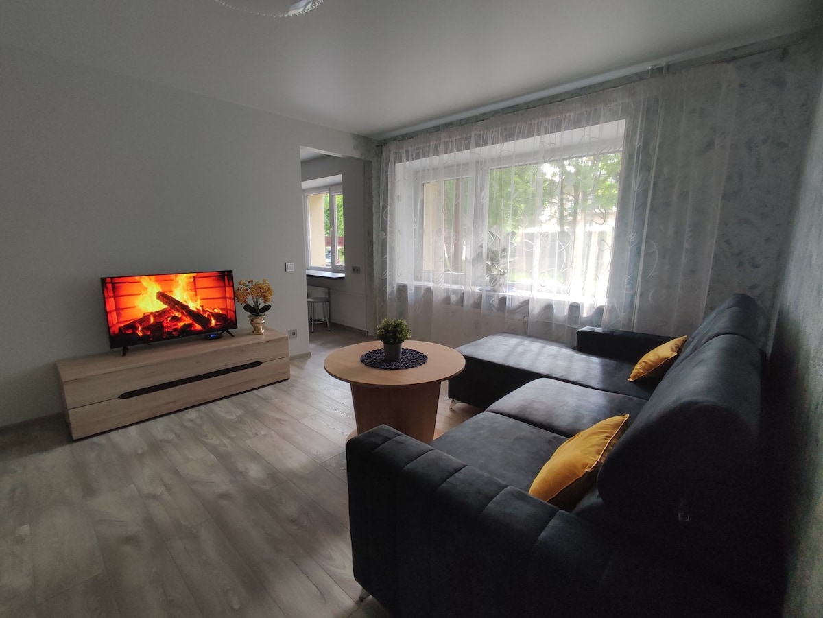 Jūsų viešnagės lauksime 2 kambarių bute 1-ame aukšte parai ar ilgesniam laikui miesto centre. Pas mus rasite: - sūkurinė vonia (greitai bus baigta įrengti ir pirtis), - televizija, - smart tv, - bevielis internetas (WIFI), - rankšluoščiai, - švari patalynė, - plaukų džiovintuvas, - dvigulė lova, - sofa su miegamaja funkcija (gali tilpti dar 2 žmonės), - virtuvėlė (kaitlentė, šaldytuvas) - arbatinukas (kava ir arbata) - parkavimo vieta. Nepilnamečiams ir vakarėliams nenuomojame. Bute nerūkoma.