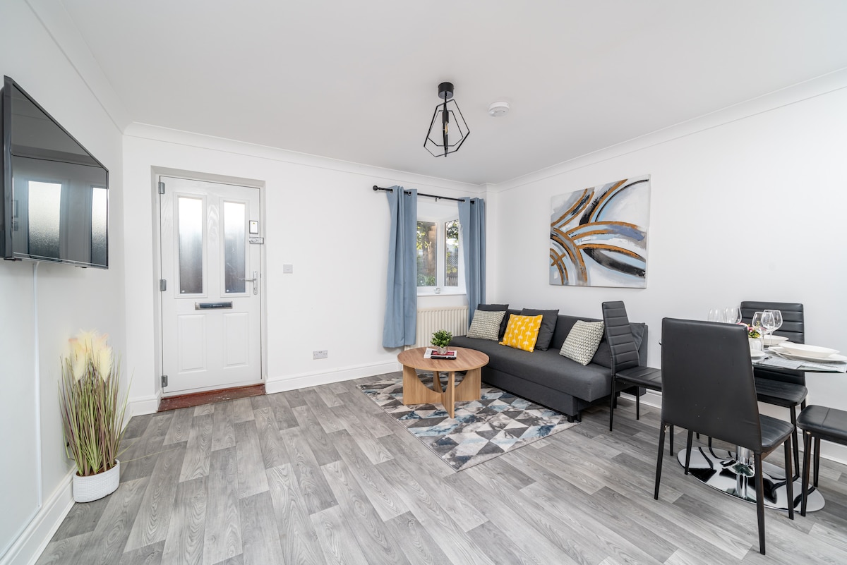 Šiuolaikinis komfortas atitinka patogumą šiame unikalaus dizaino 3BR Medway vienaaukščiame vasarnamyje. Stilingas interjeras, privatus sodas, saugi bekelės automobilių stovėjimo aikštelė - tai puiki vieta jūsų viešnagei. Vos už 10 minučių kelio pėsčiomis iki pagrindinės stoties Rainham mieste lengvai pasieksite Londoną arba pakrantę. Šeimoms patinka erdvus dizainas, o žemo lygio prieiga leidžia svečiams priimti svečius. Šie namai, esantys centre, bet ramūs, siūlo viską, ko reikia kelionei be streso, įsimintinai kelionei @ The Apple Tree