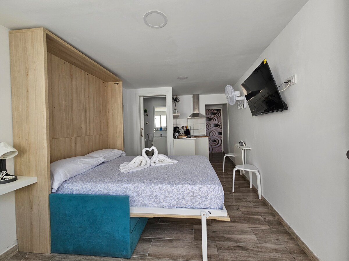 Jauki studija su 1,35 x2 sulankstoma lova ir sofa , su virtuve ,vonios kambariu , terasa ir lauko dušu, labai ramioje vietoje, 15 minučių pėsčiomis yra Maspalomas paplūdimys, artimiausias prekybos centras yra 8 minutės pėsčiomis, labai pilna studija, kurioje yra viskas, ko jums reikia