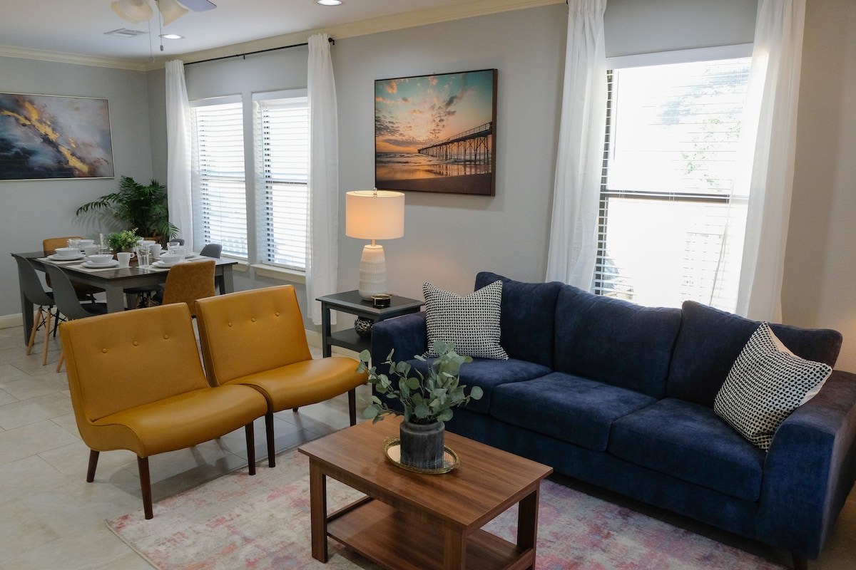 Sveiki atvykę į savo stilingus namus toli nuo namų Hiustone! Šis pilnai įrengtas trijų aukštų miesto namas yra vos už kelių minučių kelio automobiliu nuo miesto centro ir pėsčiomis iki vaizdingų Hiustono pėsčiųjų/dviračių takų. Taip pat būsite vos už kelių minučių kelio nuo geriausių miesto restoranų, kavinių, barų ir gyvybingų naktinio gyvenimo vietų - idealiai tinka tiek gurmanams, tiek tyrinėtojams. Ši erdvė su aukščiausios klasės apdaila, moderniais patogumais ir apgalvotais akcentais puikiai tinka tiek poilsiautojams, tiek verslo keliautojams.