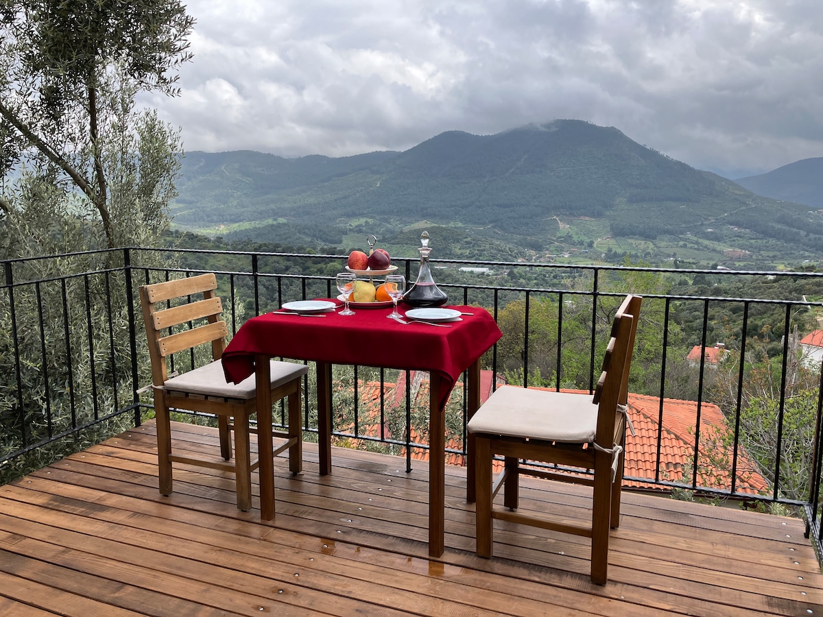 Hello, our house is in 34 decares of olive groves where no pestisit natural, regenerative agriculture is carried out. Our guest house, where you can have a calm and peaceful stay in touch with nature, consists of 50 m2 and 30m2 veranda. It is an environment away from the crowds, both easy to access and slightly isolated from Ataköy, which is a literally forest village.