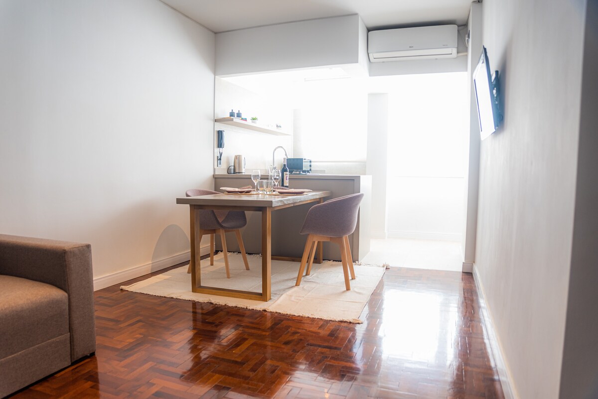Gražus butas pačioje Mendozos širdyje, Mariano Moreno gatvėje, už kelių kvartalų nuo San Martino parko, visiškai įrengtas ir įrengtas. Labai šviesus ir tylus, kuriame galite mėgautis nuostabiais kalno vaizdais, kontrastuojančiais su miestu. įsikūręs įspūdingame Leloir pastate, modernus ir unikalus dėl savo dizaino ir visų jo teikiamų paslaugų. Atvykimas nuo 15 val. ir išvykimas 10 val. (be IŠIMČIŲ)