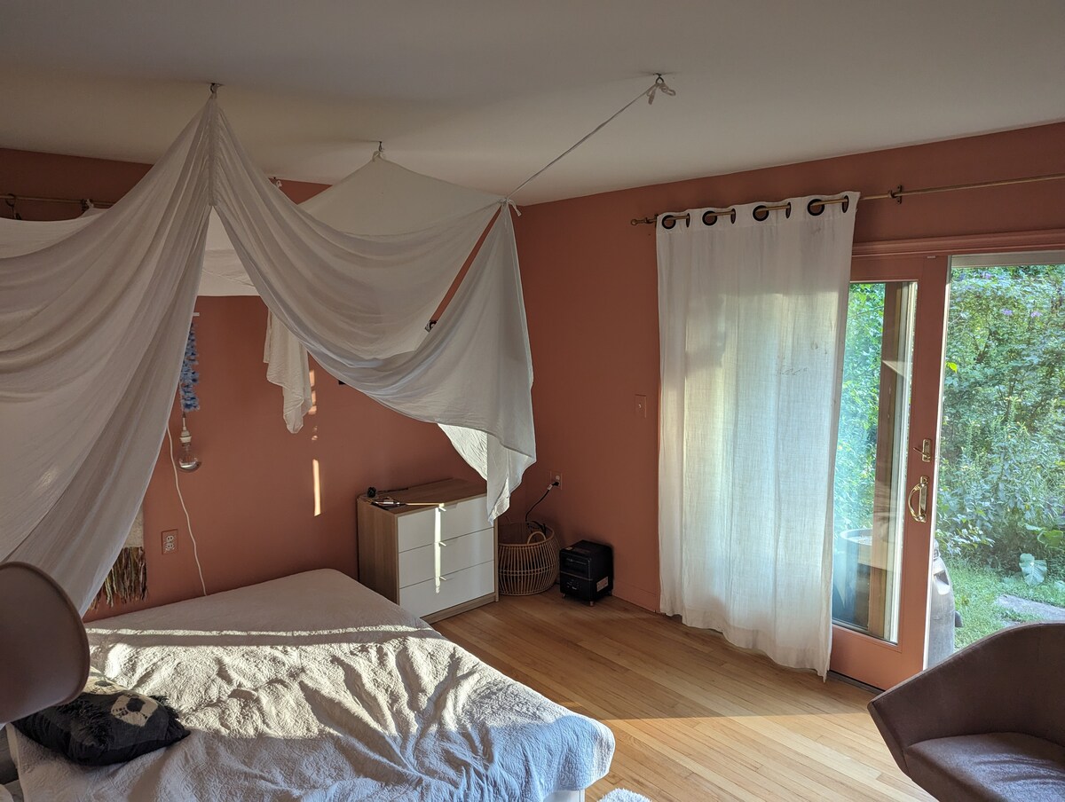 450 kv.m studija su miegamuoju ir originalia 1770 lova/vonia apačioje! Visa erdvė yra prijungta prie sodybos, tačiau turi atskirą įėjimą ir specialius skalbinius. Studija: pilna vonia, dvigulė lova, virtuvė, sofa, 65colių televizorius. Mažas miegamasis (įėjimas per studiją, žr. nuotraukas): dvigulė lova, televizorius, spinta. Šis kambarys labiausiai tinka vienam ar dviem vaikams. 1770 Miegamasis : dvigulė lova, pilna vonia, televizorius. 2 mylios pėsčiomis iki D&R kanalo. 14 min. kelio automobiliu iki Prinstono centro.