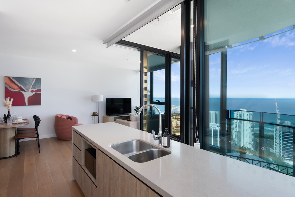 Stilingas būstas puikioje vietoje netoli visko GC. Skoningai dekoruotoje erdvėje yra dauguma patogumų, kad jaustumėtės kaip namie. Galley Island-bench yra skirtas įkvėpti jūsų socialinį laiką su šeima ir draugais pavalgyti ar išgerti. Patogi energija teka per dvigubas prancūziškas duris į saulėtą ir privatų kiemą. Jūsų lovos pilnai apsirengusios prabanga. (100% gryna prancūziška patalynė). 55colių išmanusis „ Android“ televizorius su „Netflix“. Paprašius, europietiška skalbykla 2 banglentės