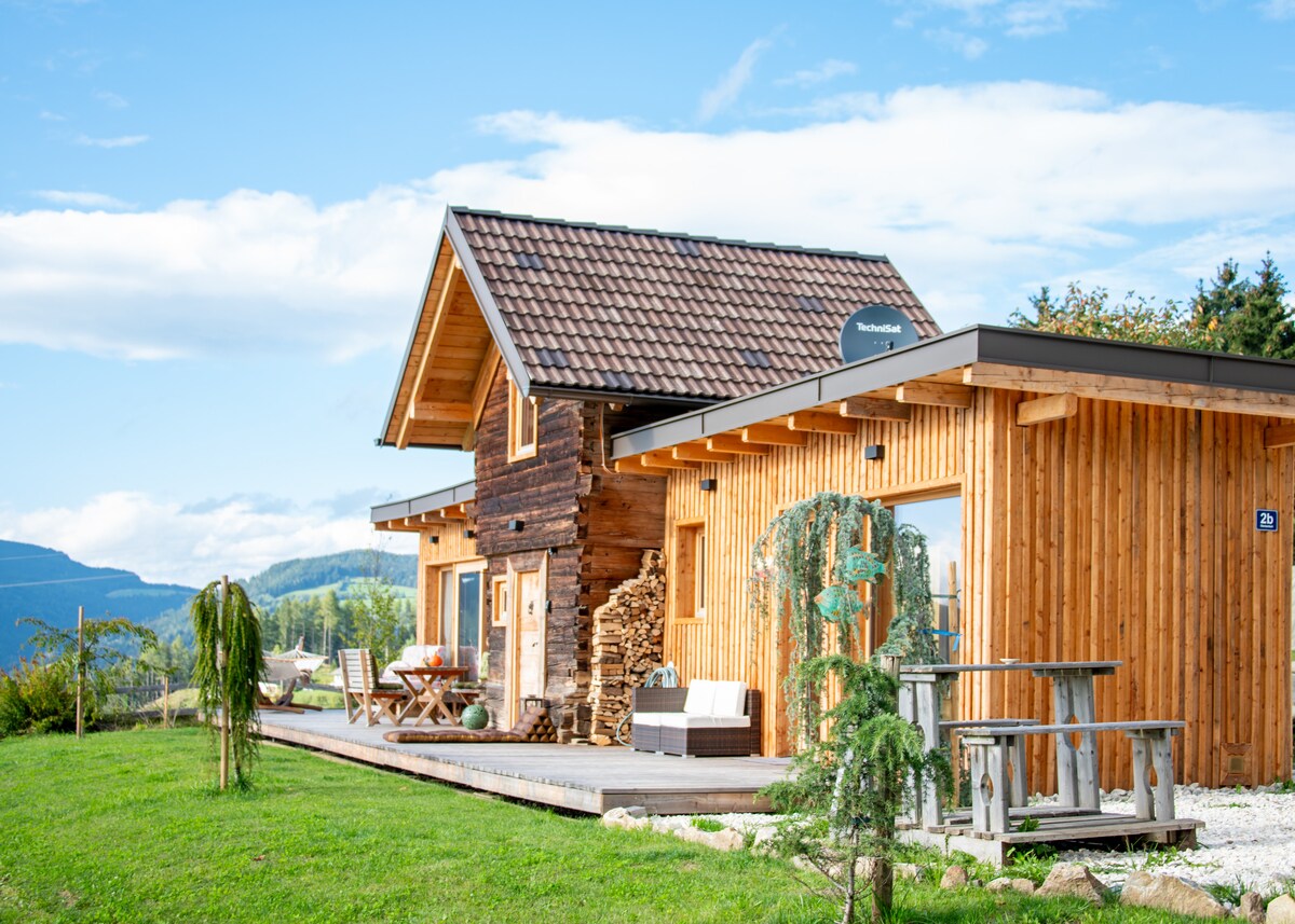 Welcome to the Hanibauer Log Cabin – your retreat at 1,100 meters! Our cozy "Gingerbread House" offers pure nature with views to Slovenia. Enjoy the quacking of ducks, the ringing of cowbells, and birdsong. Experience real country life as fields are mowed, fertilized, and cattle are herded. Perfect for a break from everyday life – breathe in fresh mountain air and enjoy the peace.