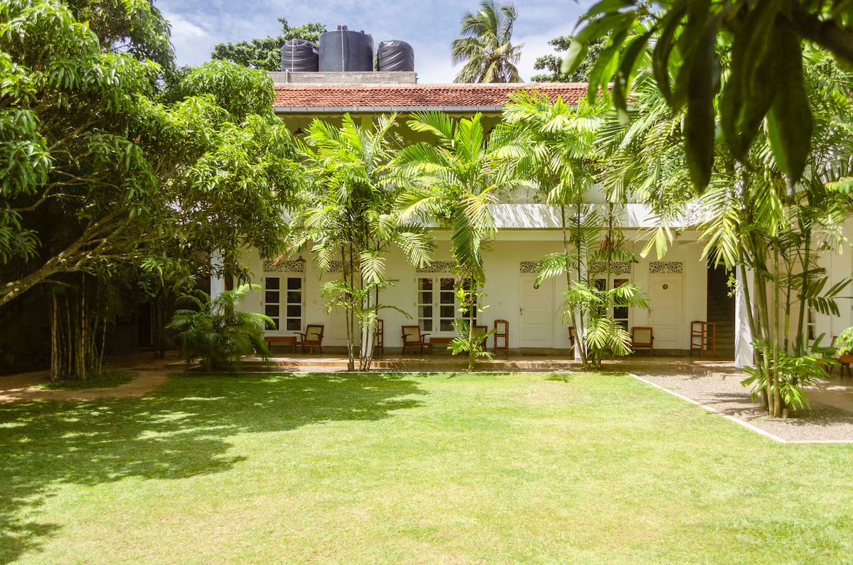 Nuostabūs kolonijinio stiliaus svečių namai, įsikūrę atogrąžų sodų akre, iš kurių atsiveria bekraštis baseinas ir džiunglių vaizdai. Visuose mūsų kambariuose yra keturios plakato lovos, oro kondicionierius, lubų ventiliatoriai ir karšto vandens dušai. Tiek vėžlių, tiek kokosų kalva yra už 2 minučių kelio pėsčiomis nuo mūsų, o gyvybingi barai ir restoranai pagrindiniame Mirisos paplūdimyje yra už 2 minučių kelio automobiliu nuo tuk tuk. Taip pat siūlome masažo, jogos, banglenčių sporto pamokas, Šri Lankos virtuvės pamokas, taksi paslaugas ir banginių stebėjimo keliones.